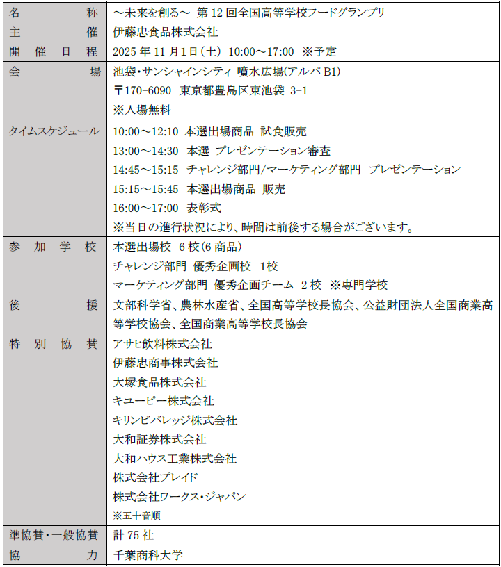 伊藤忠食品株式会社 全国高等学校フードグランプリ事務局