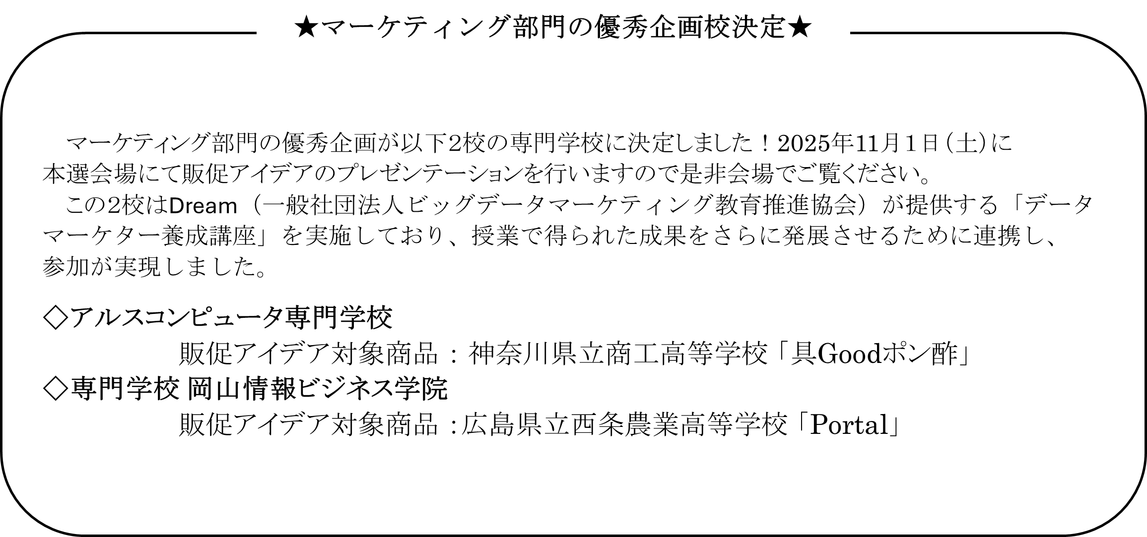 ※商品開発経験のない高校に向けた学習機会の提供を目的として、本グランプリに応募可能なレベルの商品企画のアイデアを募集。書面による審査を実施し、優秀企画に選定された高校は本選でプレゼンテーションを実施する。